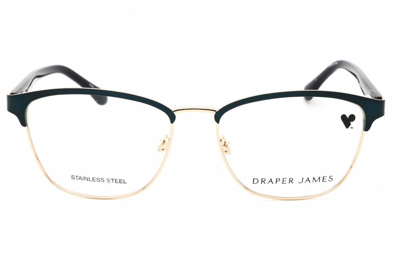 Montura de gafas marca DRAPER JAMES con forma Clubmaster estilo de marco Media Montura, de colores Negro, Dorado