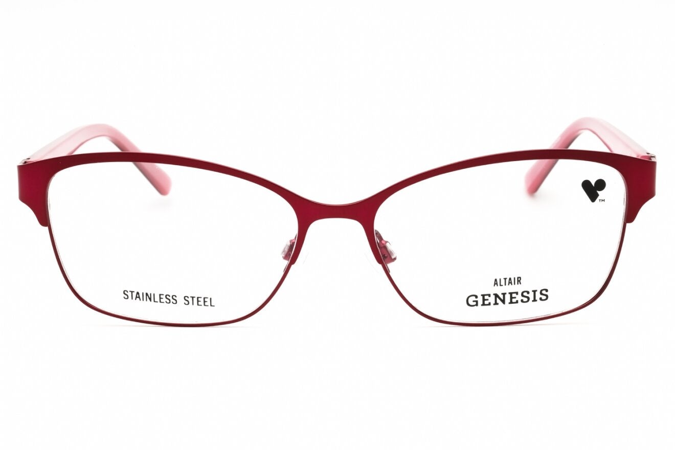 Montura de gafas marca GENESIS con forma Clubmaster estilo de marco Media Montura, de colores Rosado, Negro