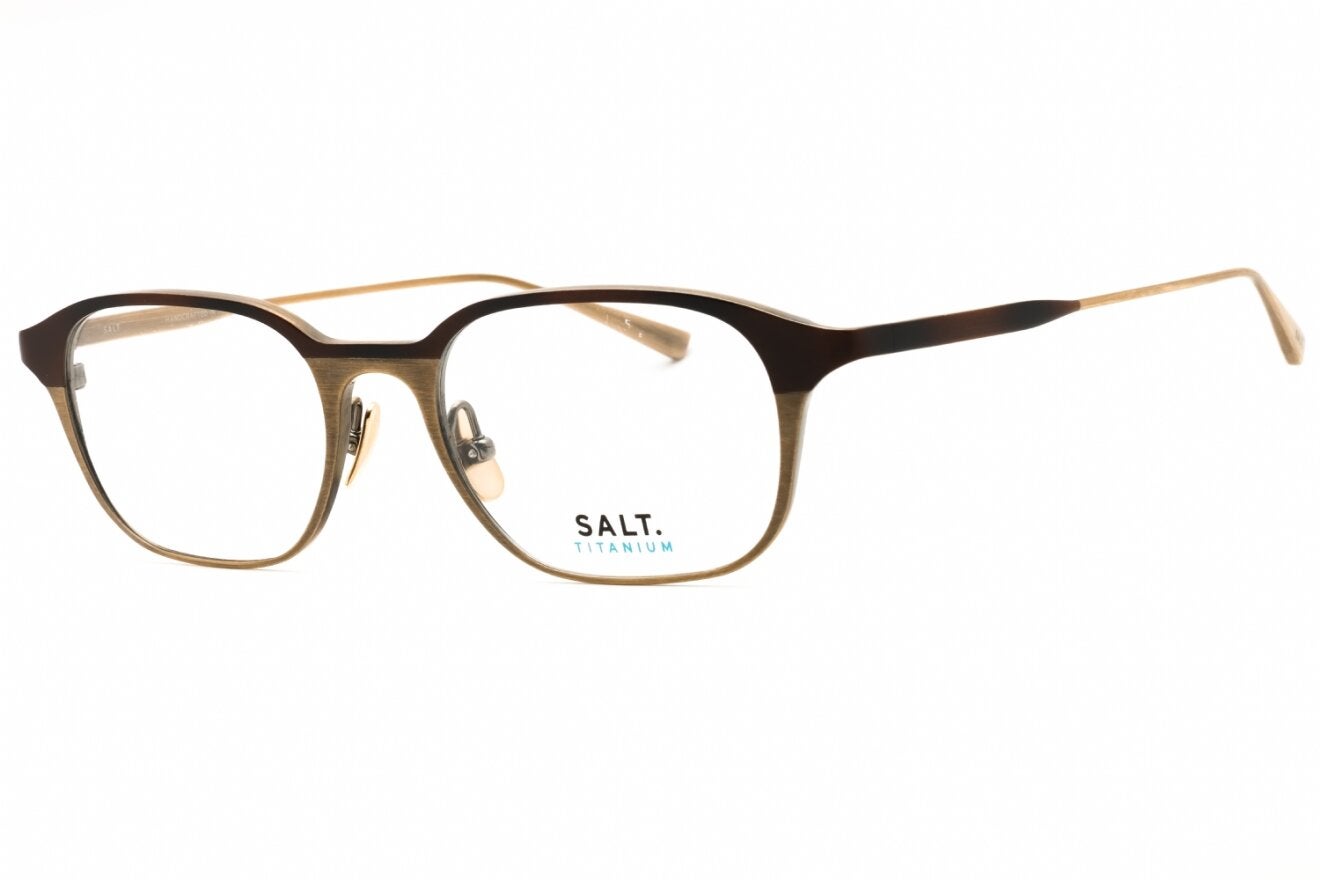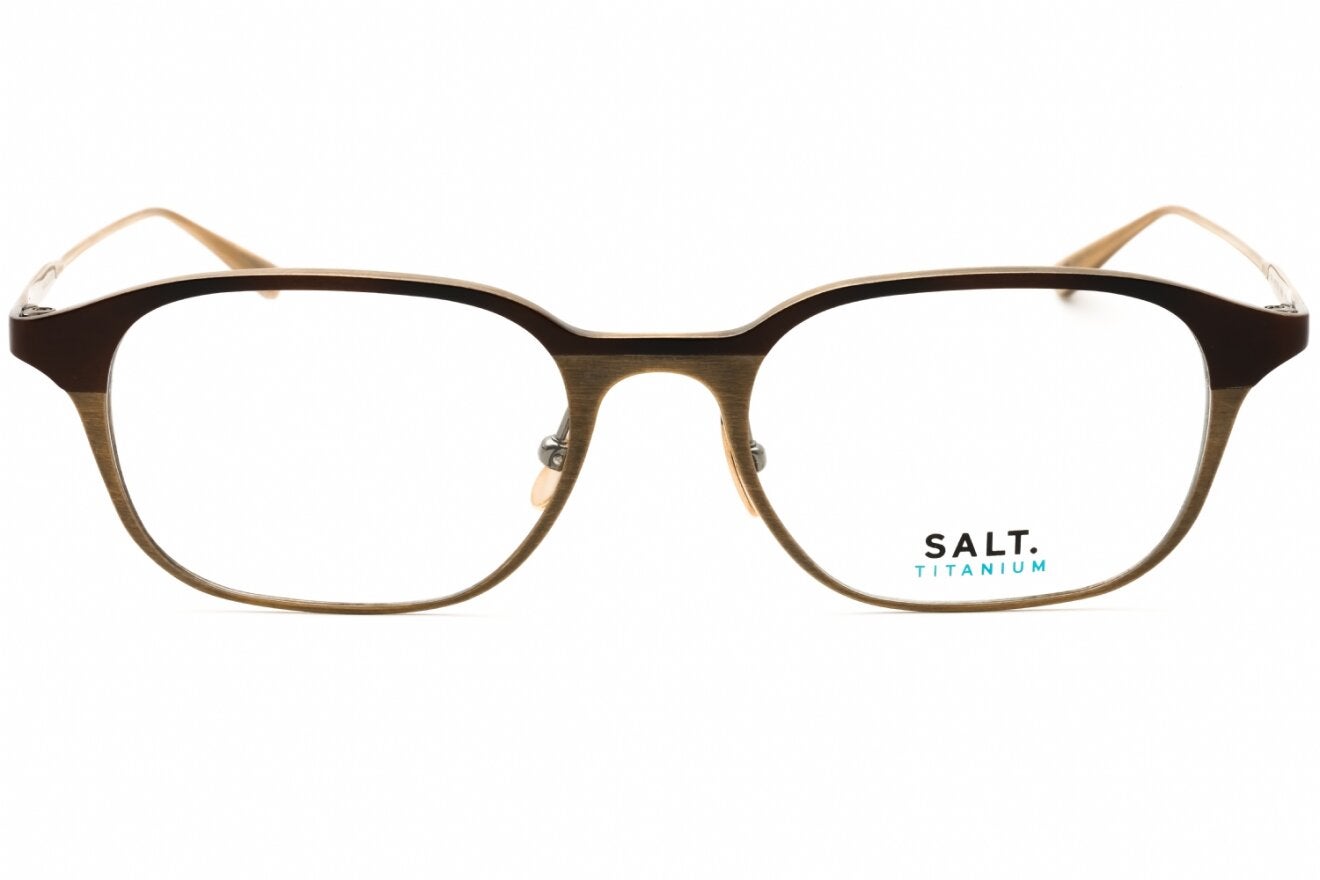 Montura de gafas marca Salt con forma Rectangular estilo de marco Media Montura, de colores Cafe, Dorado