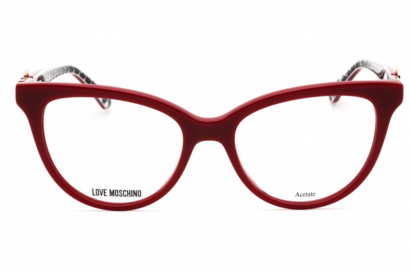 Montura de gafas marca MOSCHINO LOVE con forma Agatada estilo de marco Completo, de colores Negro, Rojo