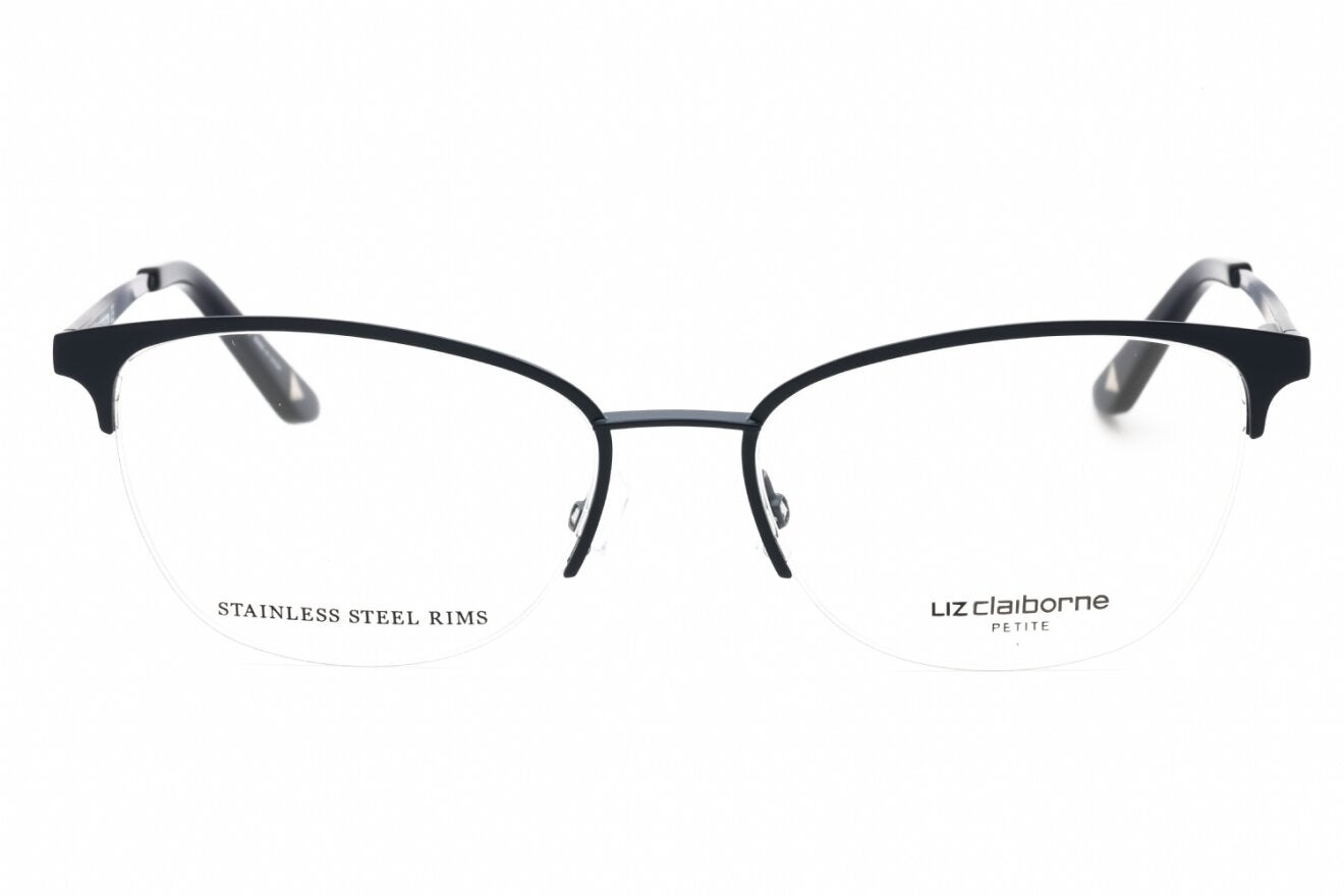 Montura de gafas marca LIZ CLAIBORNE con forma Rectangular estilo de marco Media Montura, de colores Negro, Gris