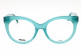 Montura de gafas marca MOSCHINO con forma Agatada estilo de marco Completo, de color Verde Aguamarina