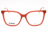 Montura de gafas marca MOSCHINO LOVE con forma Cuadradas estilo de marco Completo, de colores Rojo, Transparente
