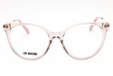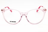 Montura de gafas marca MOSCHINO LOVE con forma Redonda estilo de marco Completo, de colores Rosado, Transparente