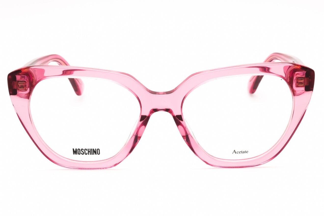 Montura de gafas marca MOSCHINO con forma Agatada estilo de marco Completo, de color Rosado