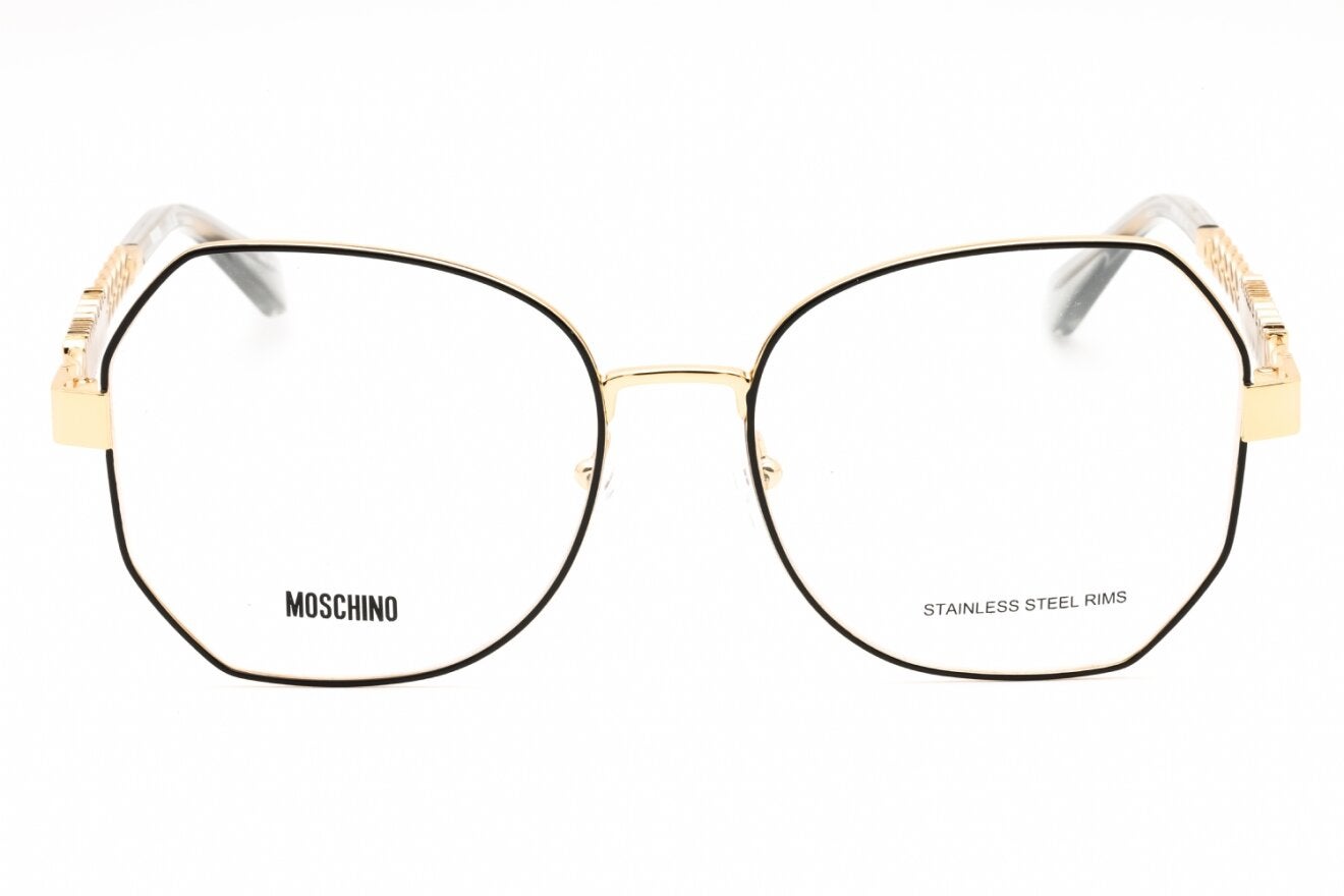 Montura de gafas marca MOSCHINO con forma Ovalada estilo de marco Al aire, de colores Negro, Dorado