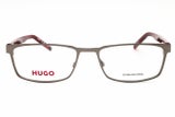 Montura de gafas marca HUGO con forma Rectangular estilo de marco Completo, de colores Rojo, Gris