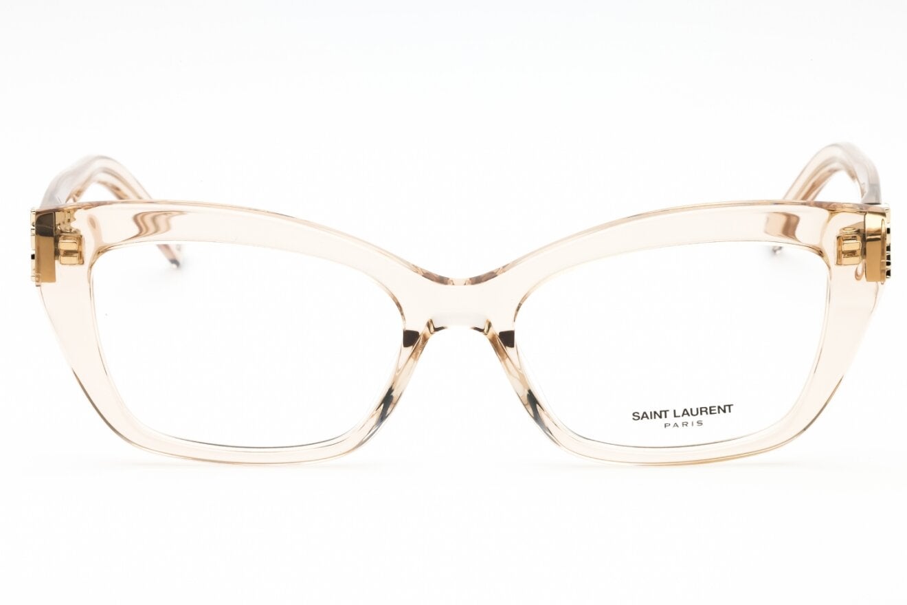 Montura de gafas marca YVES SAINT LAURENT con forma Agatada estilo de marco Completo, de colores Transparente, Crema