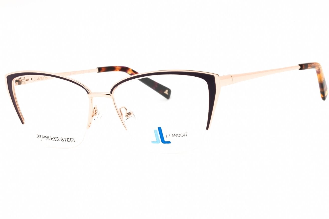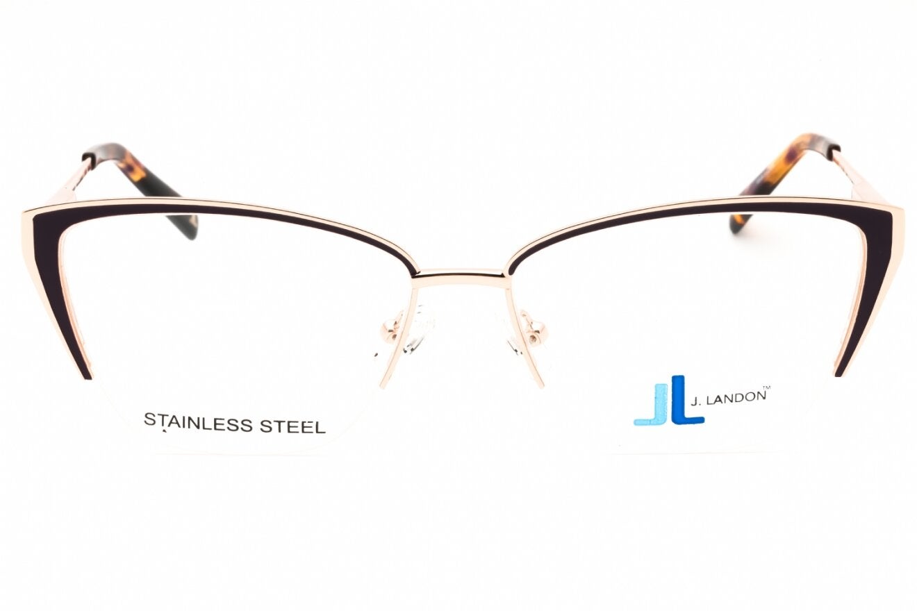 Montura de gafas marca J. Landon con forma Clubmaster estilo de marco Media Montura, de colores Negro, Animal Print, Dorado