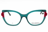 Montura de gafas marca KARL LAGERFELD con forma Agatada estilo de marco Completo, de colores Rojo, Verde Aguamarina