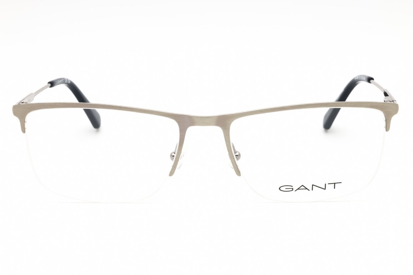 Montura de gafas marca GANT con forma Rectangular estilo de marco Media Montura, de colores Gris, Plata