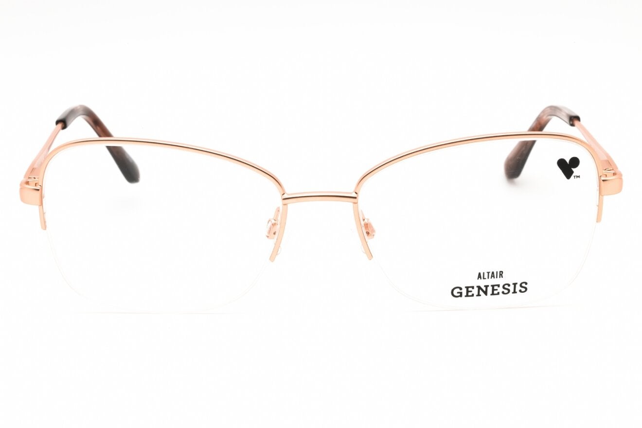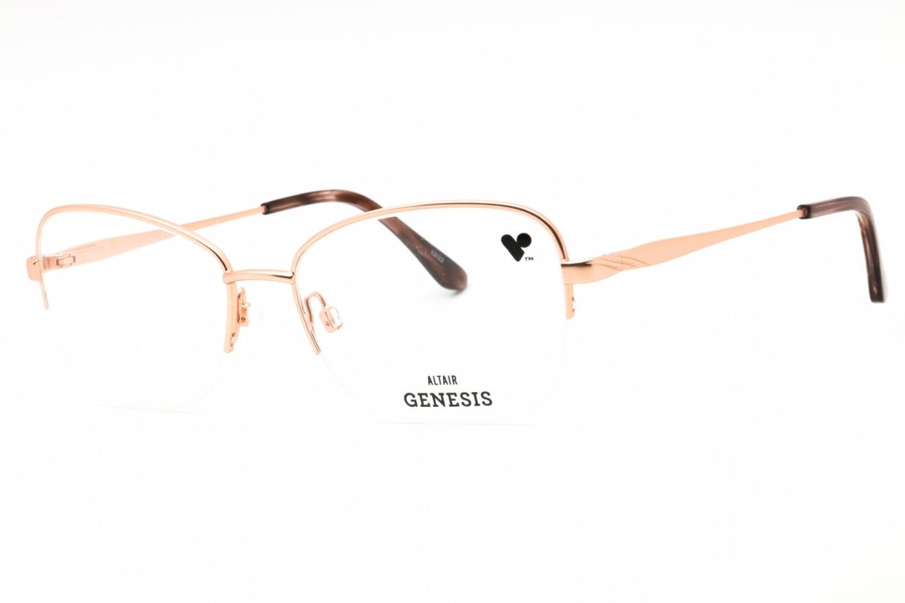 Montura de gafas marca GENESIS con forma Rectangular estilo de marco Media Montura, de colores Cafe, Oro rosa