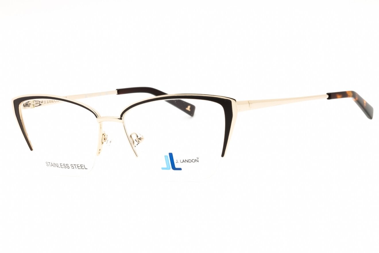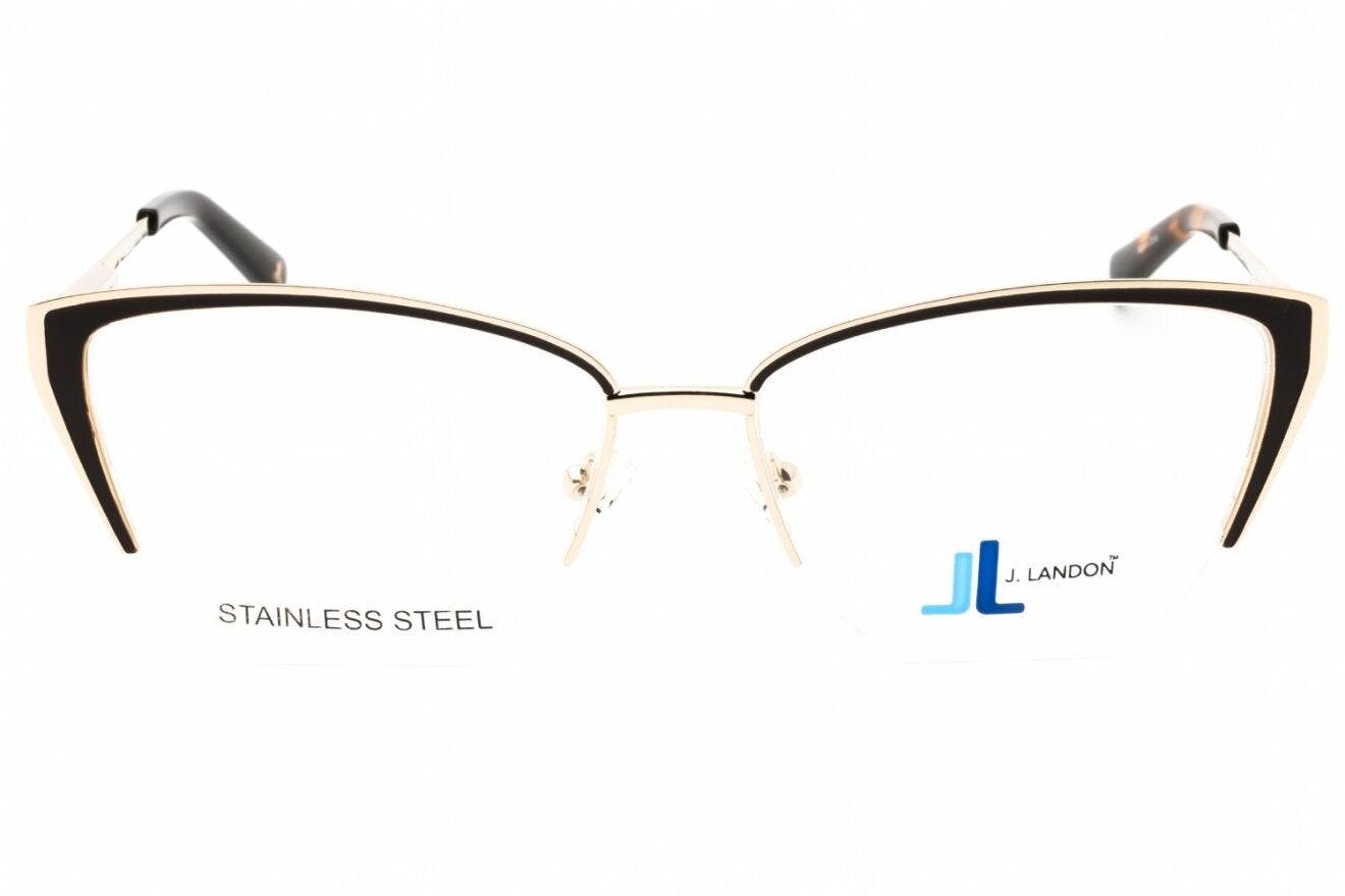 Montura de gafas marca J. Landon con forma Clubmaster estilo de marco Media Montura, de colores Negro, Dorado