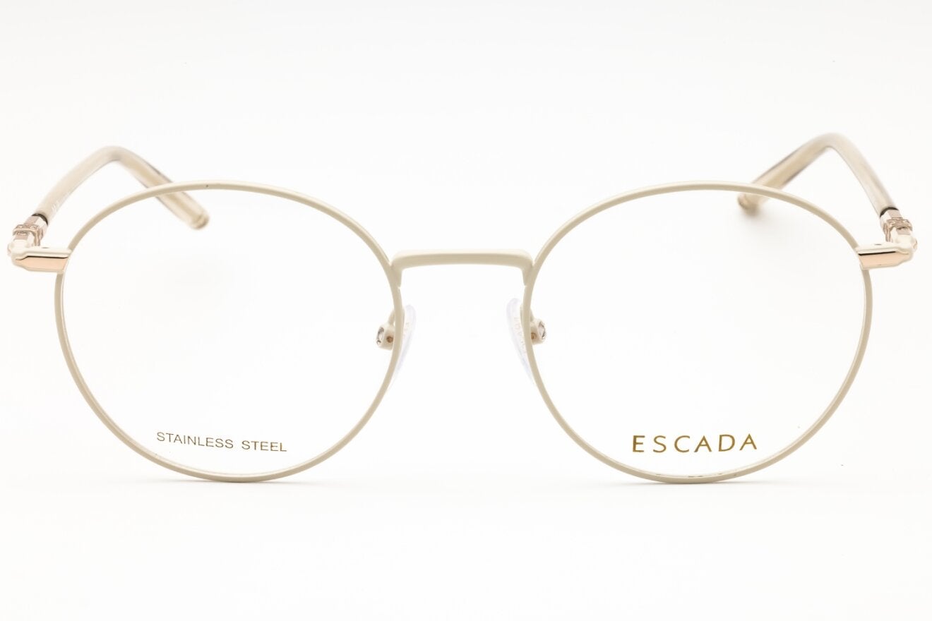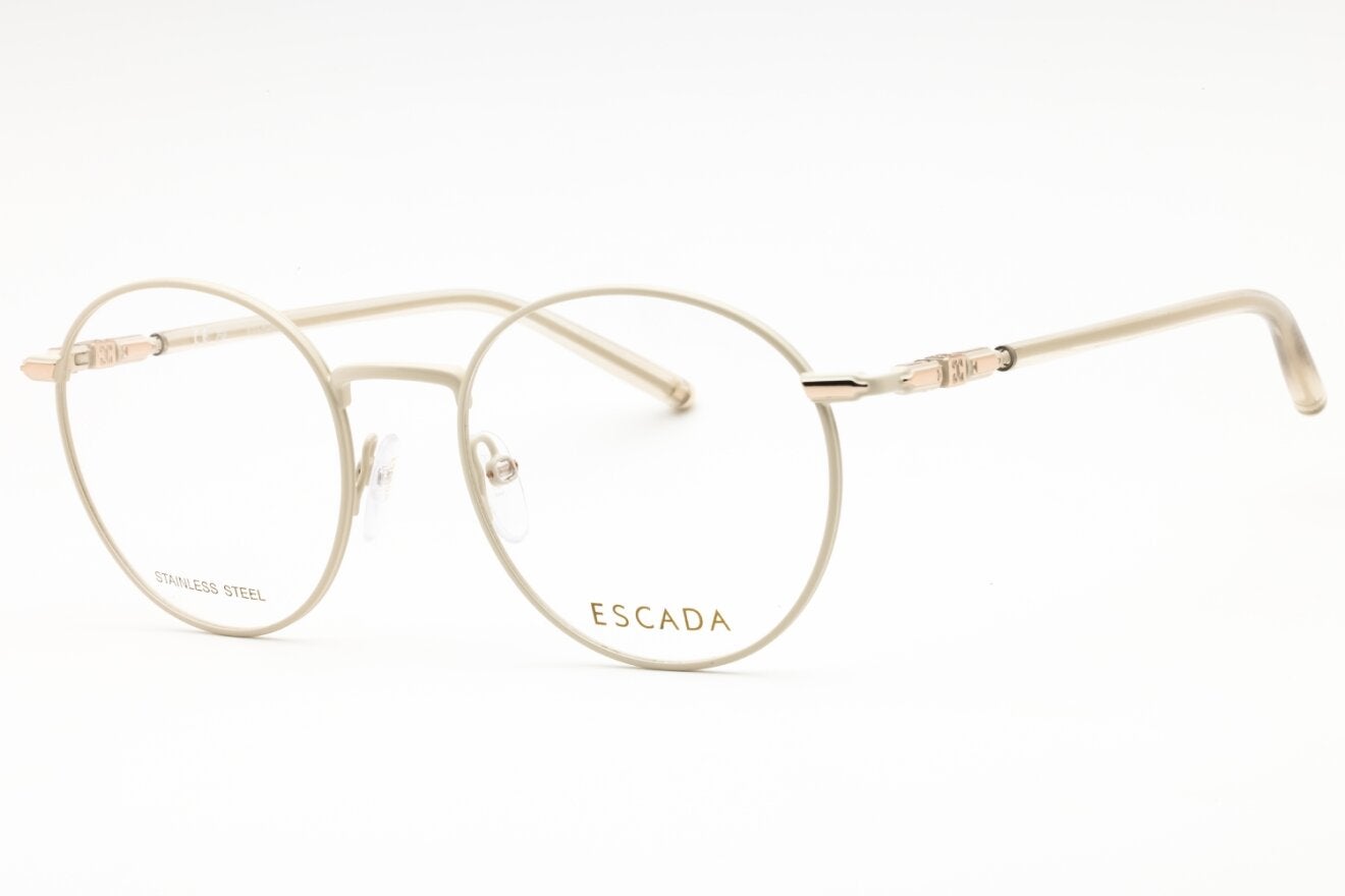 Montura de gafas marca Escada con forma Redonda estilo de marco Al aire, de colores Plata, Oro rosa