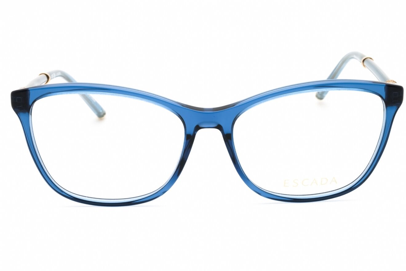 Montura de gafas marca Escada con forma Agatada estilo de marco Completo, de colores Gris, Azul