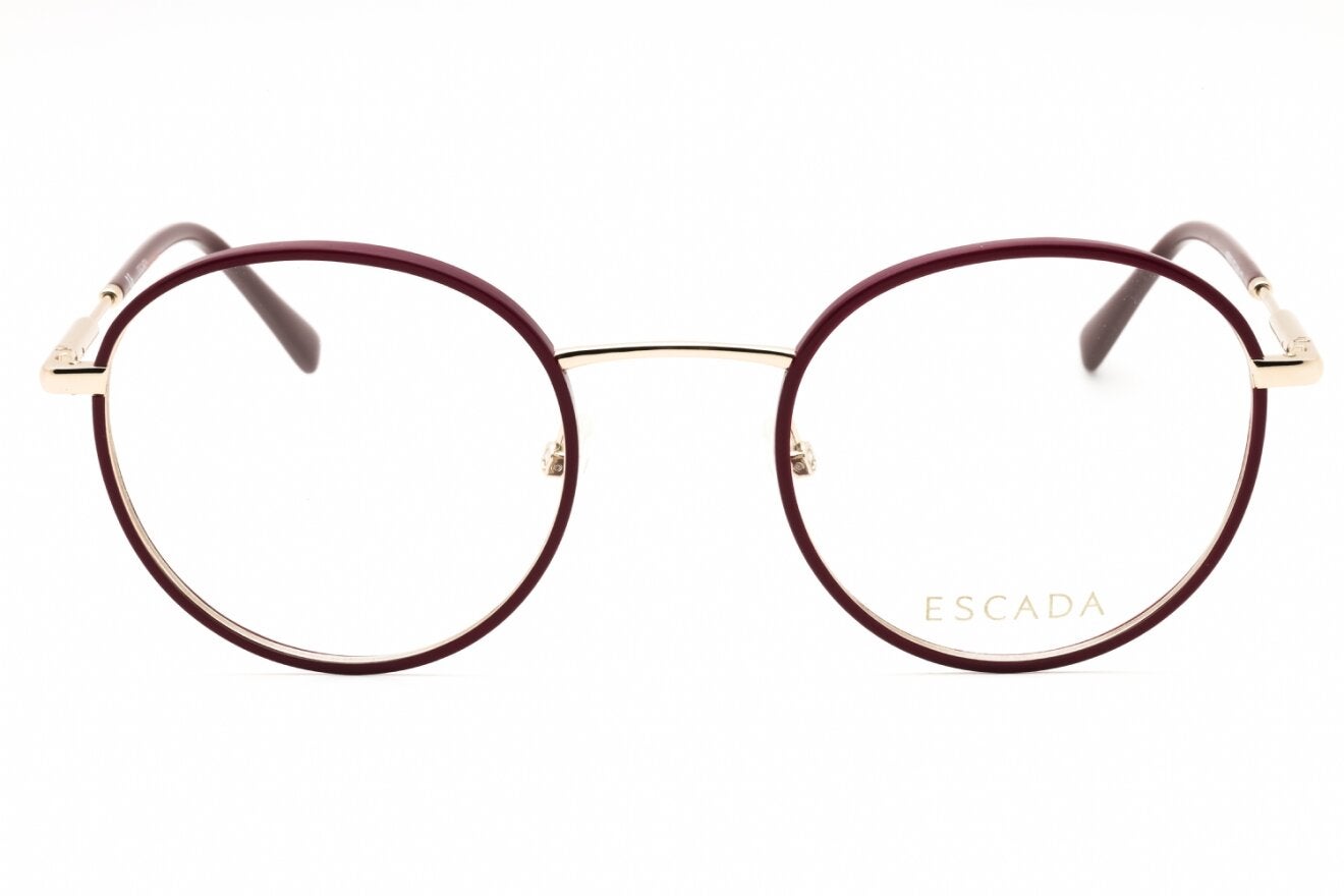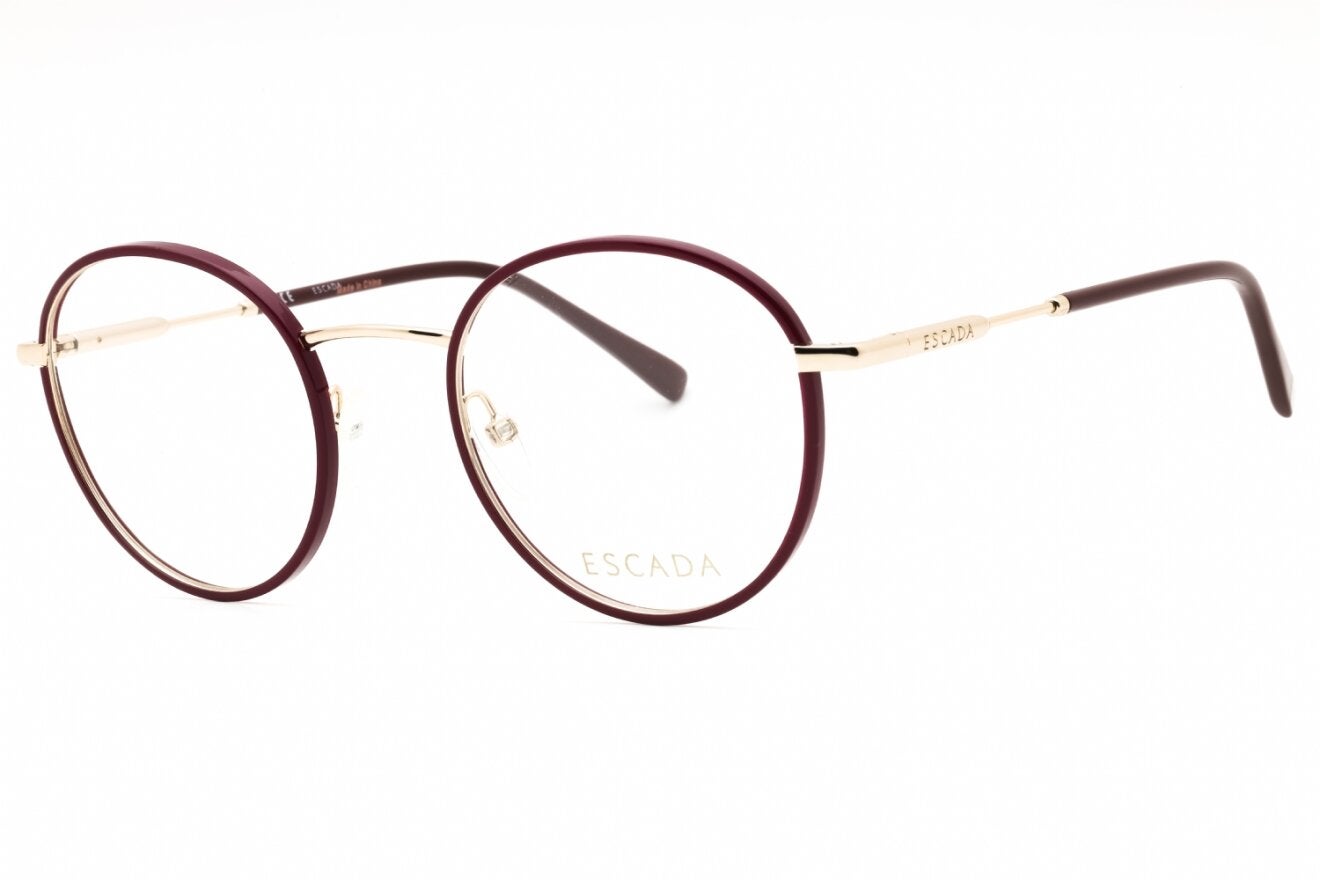 Montura de gafas marca Escada con forma Redonda estilo de marco Al aire, de colores Vinotinto, Dorado