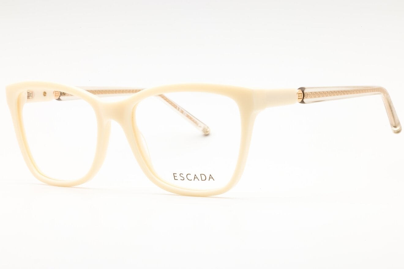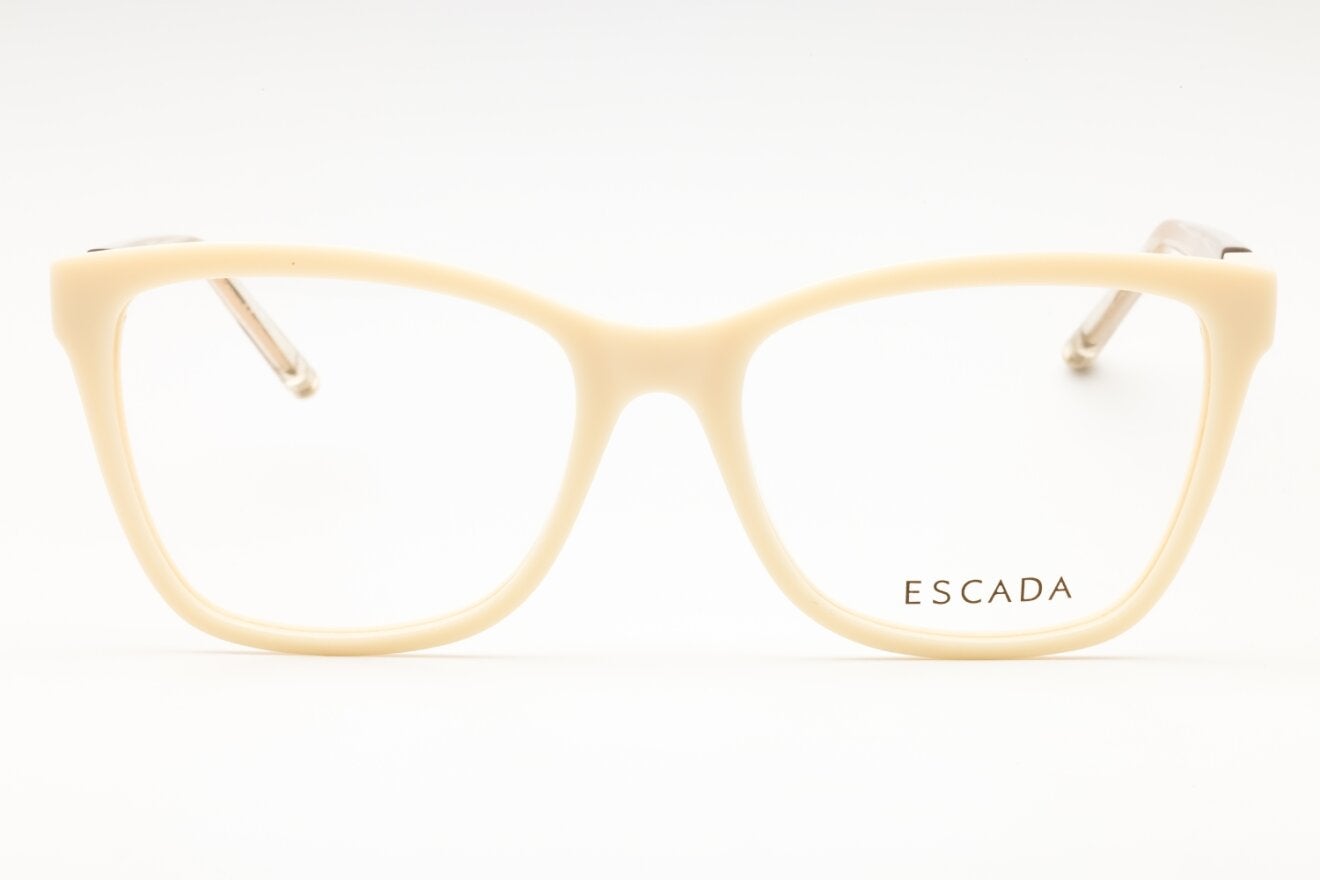 Montura de gafas marca Escada con forma Cuadradas estilo de marco Completo, de color Crema