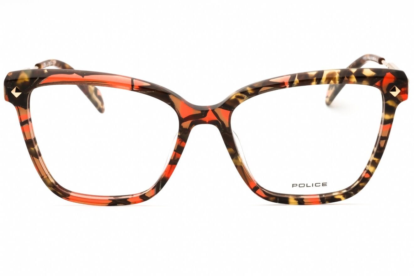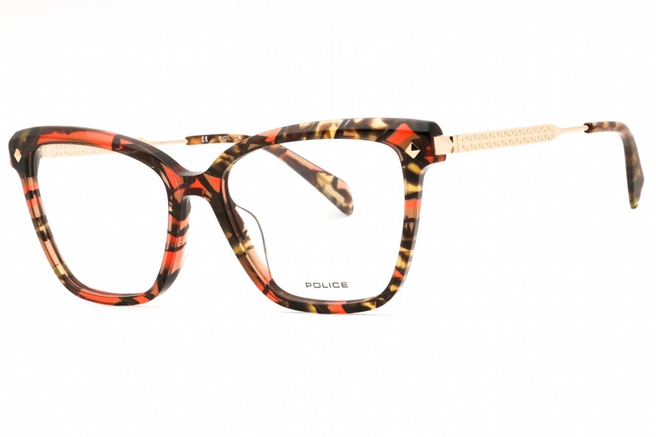 Montura de gafas marca POLICE con forma Cuadradas estilo de marco Completo, de colores Rojo, Cafe, Animal Print