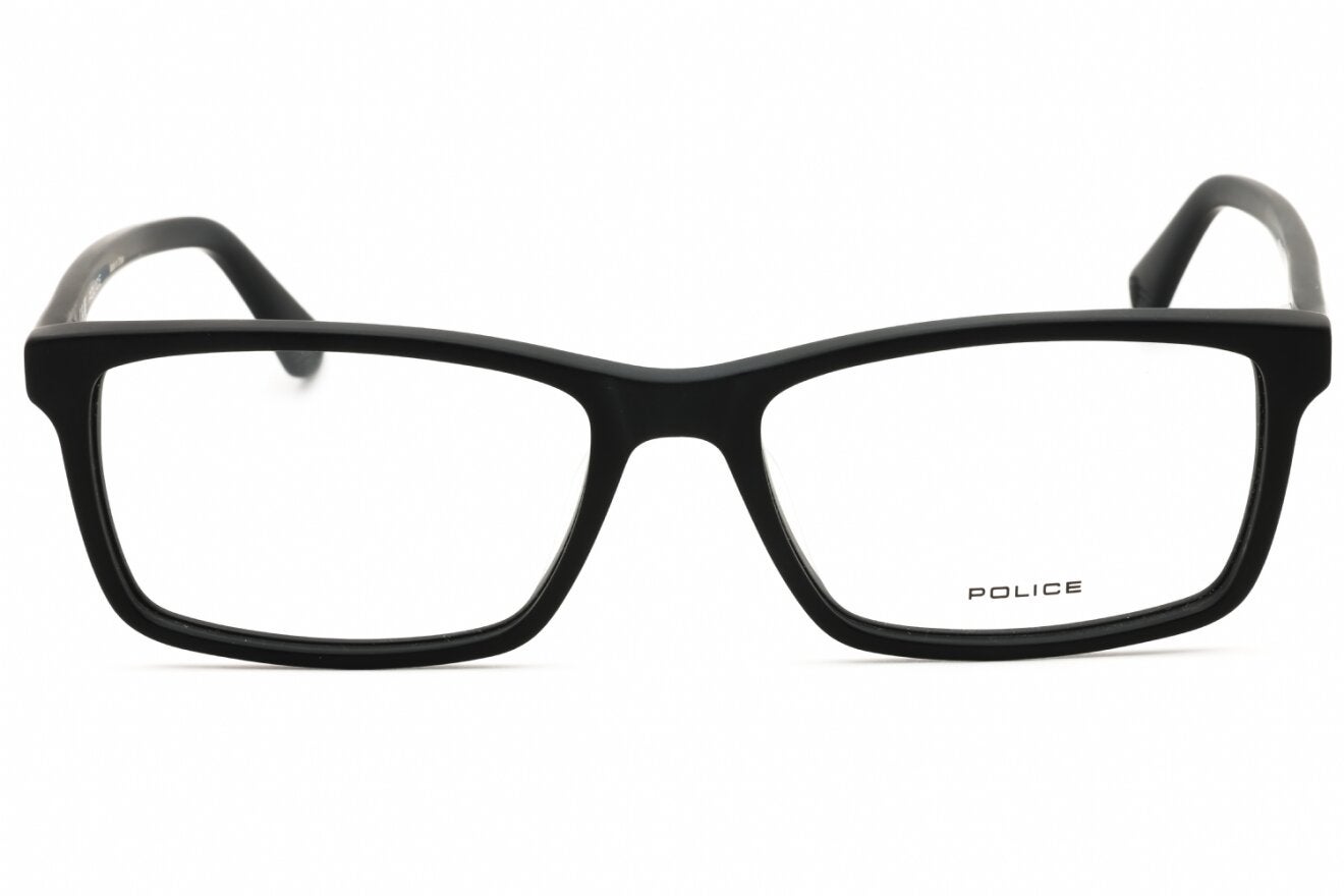 Montura de gafas marca POLICE con forma Rectangular estilo de marco Completo, de color Negro