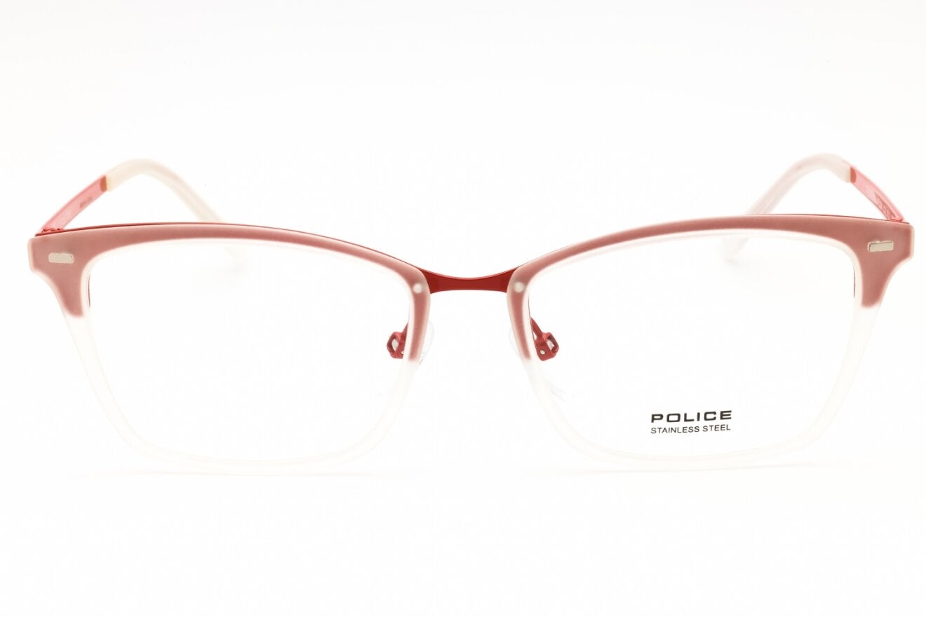 Montura de gafas marca POLICE con forma Rectangular estilo de marco Media Montura, de colores Rosado, Rojo