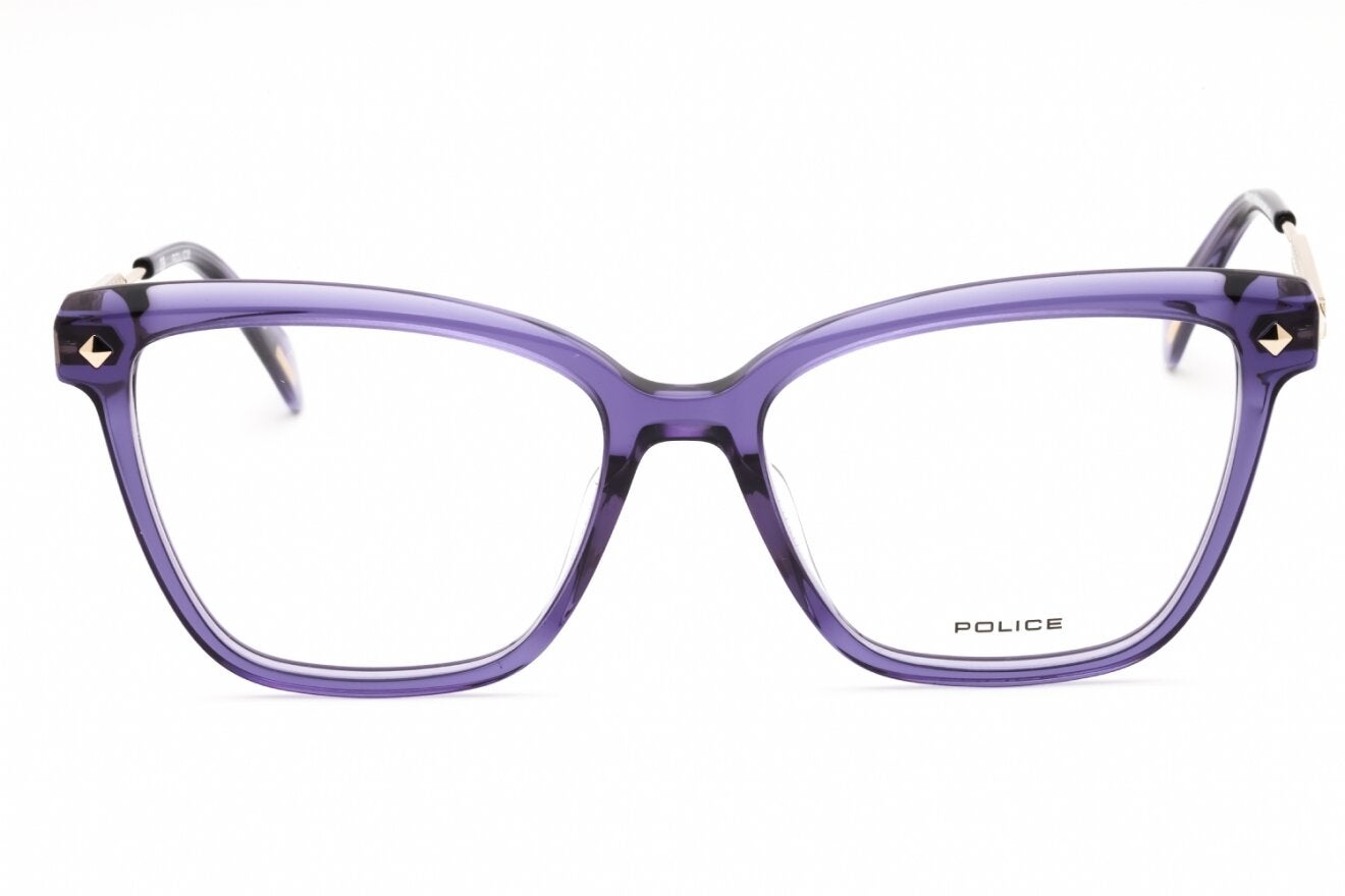 Montura de gafas marca POLICE con forma Cuadradas estilo de marco Completo, de colores Dorado, Morado Claro