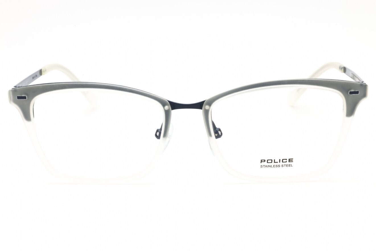Montura de gafas marca POLICE con forma Rectangular estilo de marco Media Montura, de colores Negro, Gris