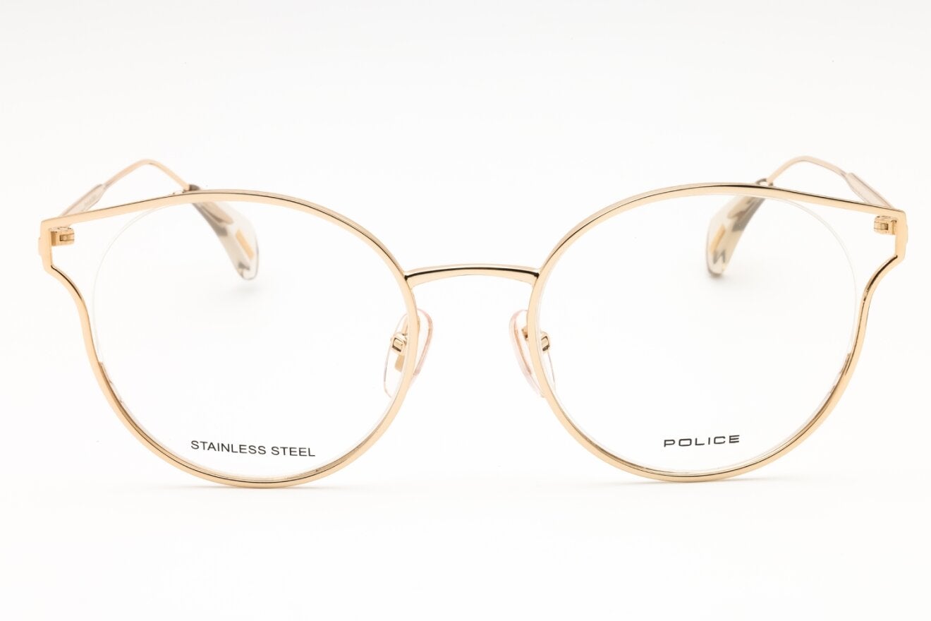 Montura de gafas marca POLICE con forma Redonda estilo de marco Al aire, de colores Transparente, Dorado