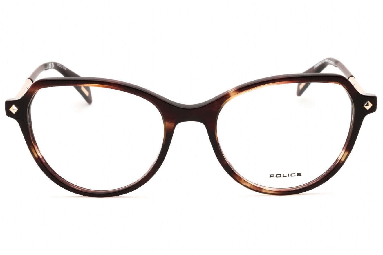 Montura de gafas marca POLICE con forma Redonda estilo de marco Completo, de colores Cafe, Dorado