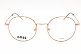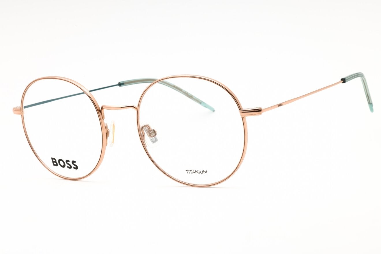Montura de gafas marca HUGO BOSS con forma Redonda estilo de marco Al aire, de colores Plata, Oro rosa