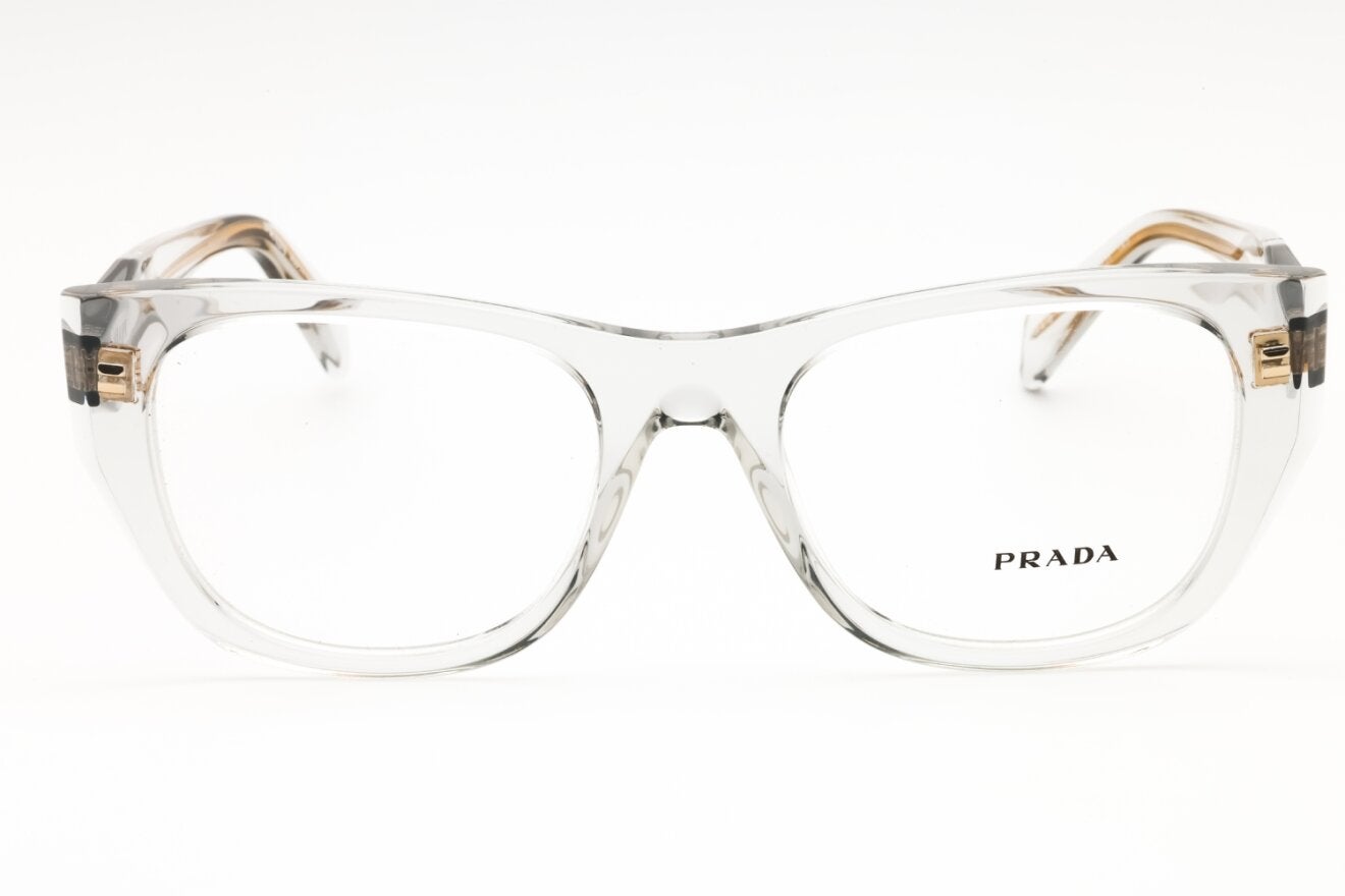 Montura de gafas marca PRADA con forma Agatada estilo de marco Completo, de colores Transparente, Dorado