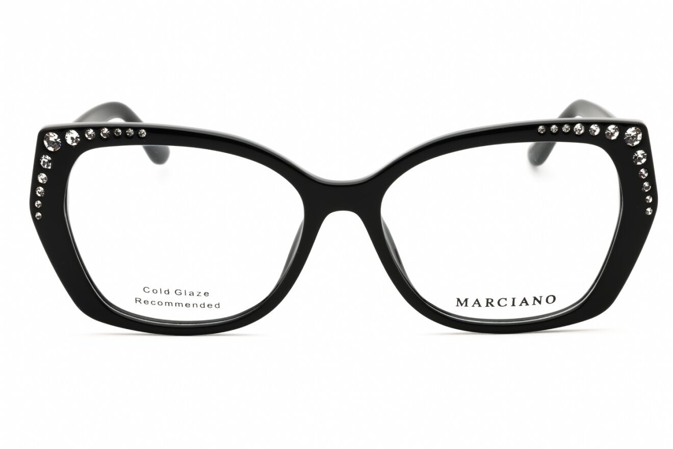 Montura de gafas marca GUESS BY MARCIANO con forma Agatada estilo de marco Completo, de color Negro