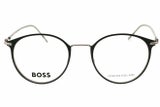 Montura de gafas marca HUGO BOSS con forma Redonda estilo de marco Al aire, de colores Negro, Plata