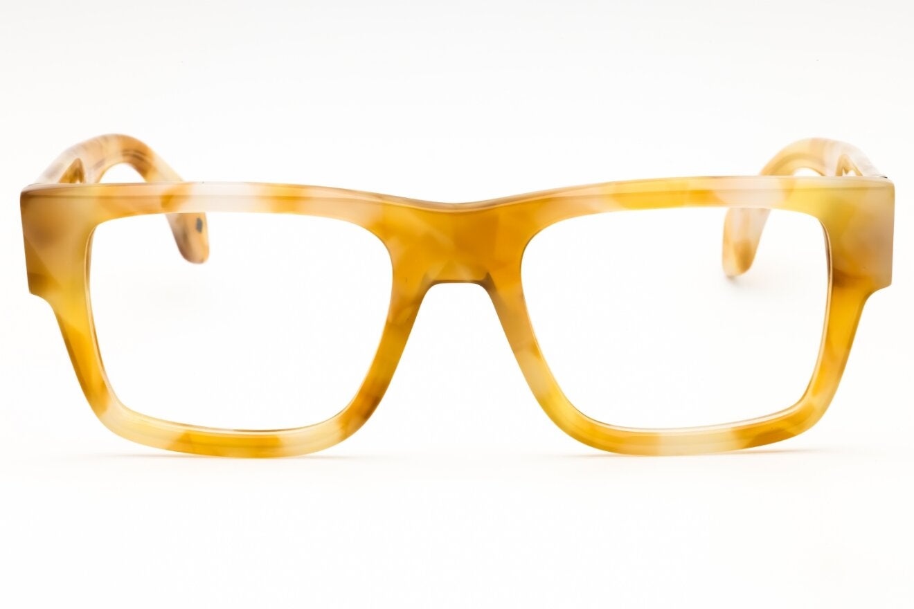 Montura de gafas marca Palm Angels con forma Wayfarer estilo de marco Completo, de colores Amarillo Herbal, Animal Print