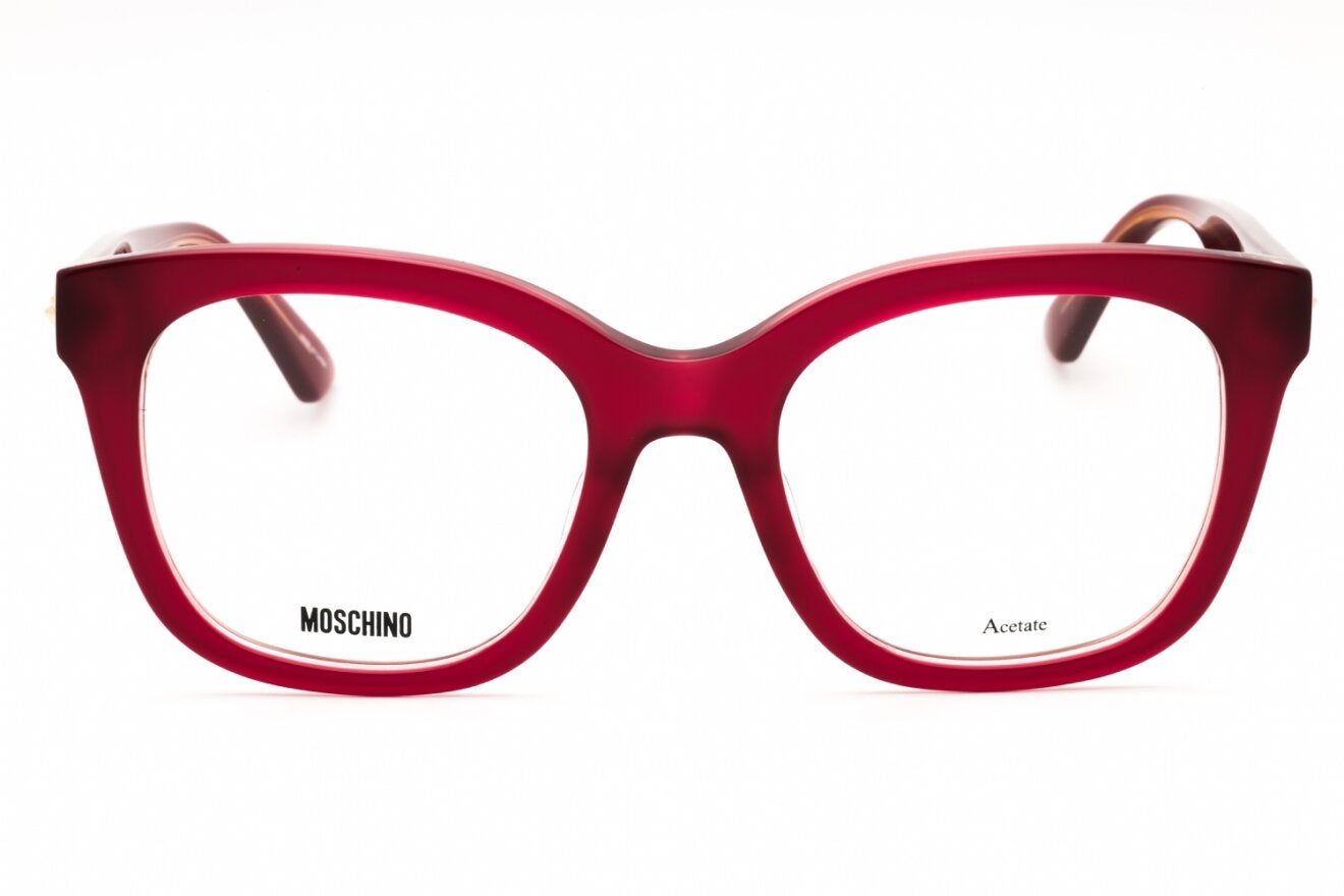 Montura de gafas marca MOSCHINO con forma Cuadradas estilo de marco Completo, de color Vinotinto