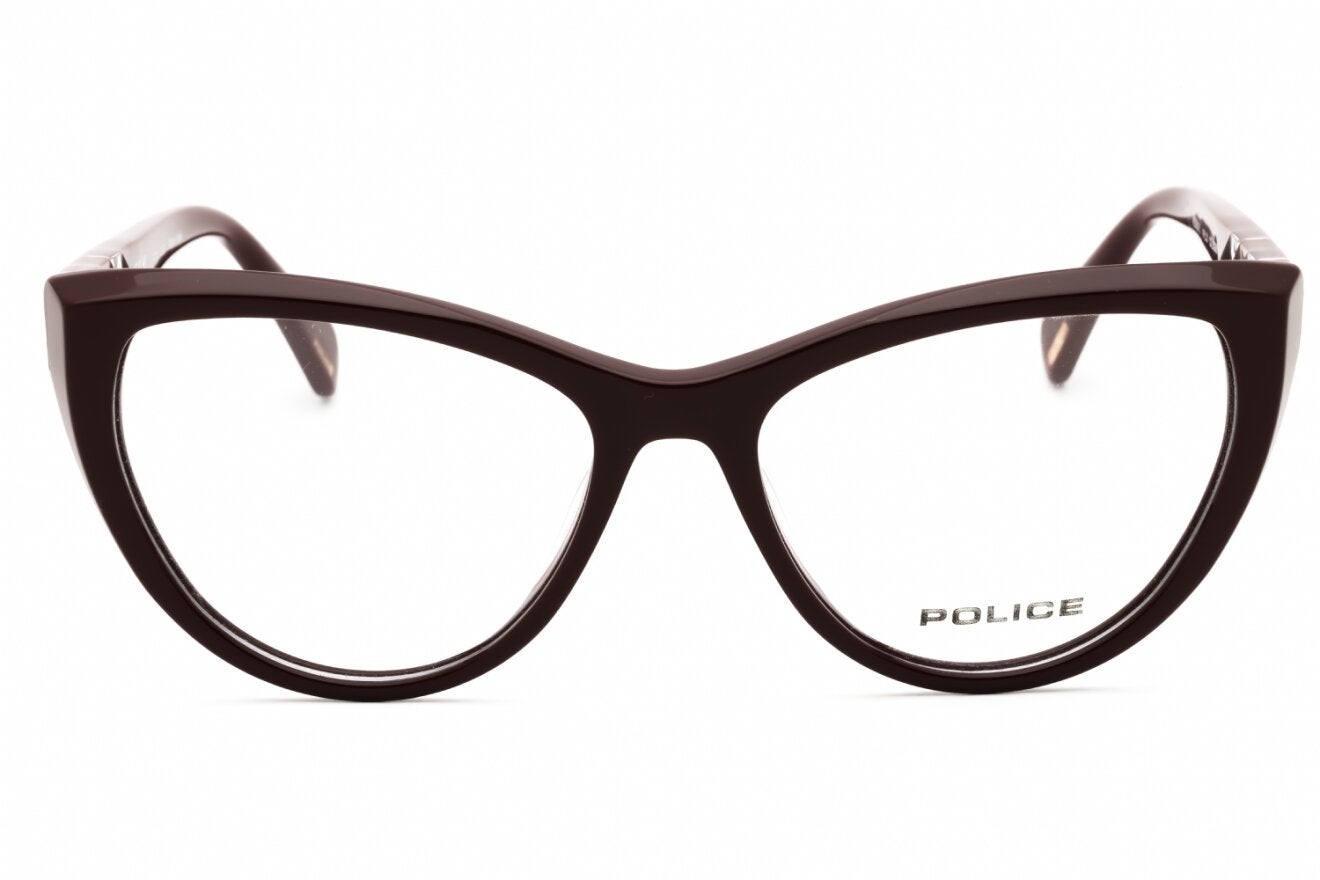 Montura de gafas marca POLICE con forma Agatada estilo de marco Completo, de colores Vinotinto, Cafe