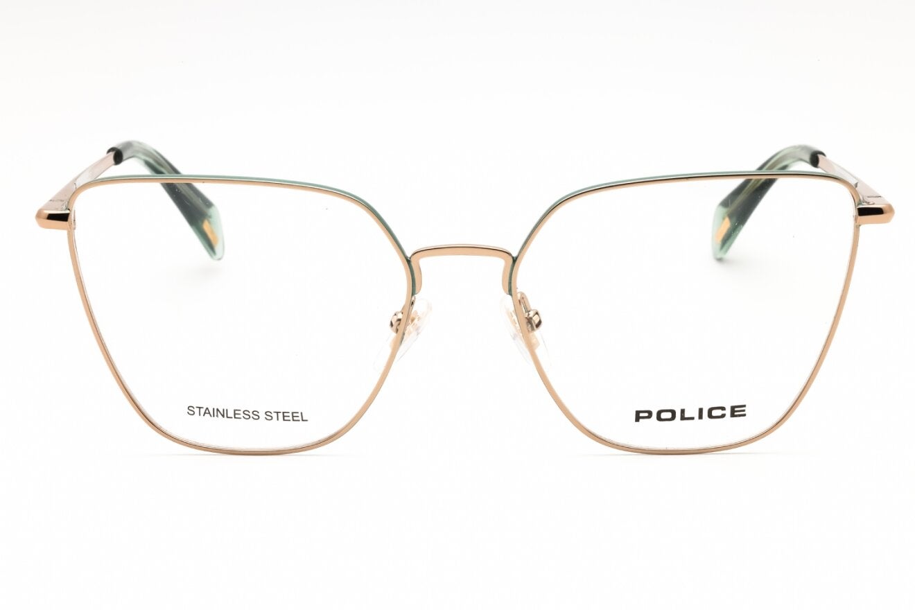 Montura de gafas marca POLICE con forma Agatada estilo de marco Al aire, de colores verde, Dorado