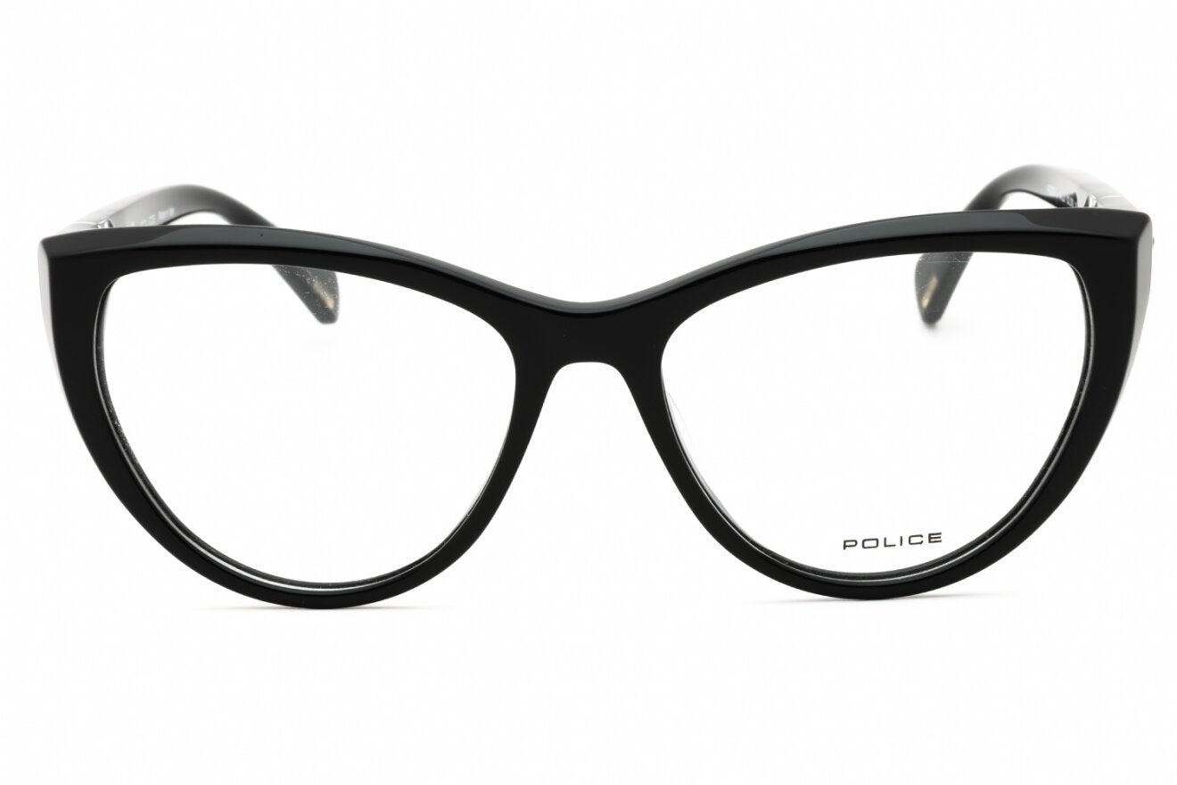 Montura de gafas marca POLICE con forma Agatada estilo de marco Completo, de colores Negro, Blanco