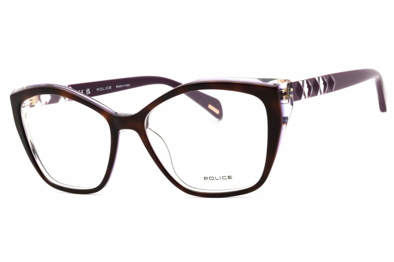 Montura de gafas marca POLICE con forma Agatada estilo de marco Completo, de colores Negro, Vinotinto