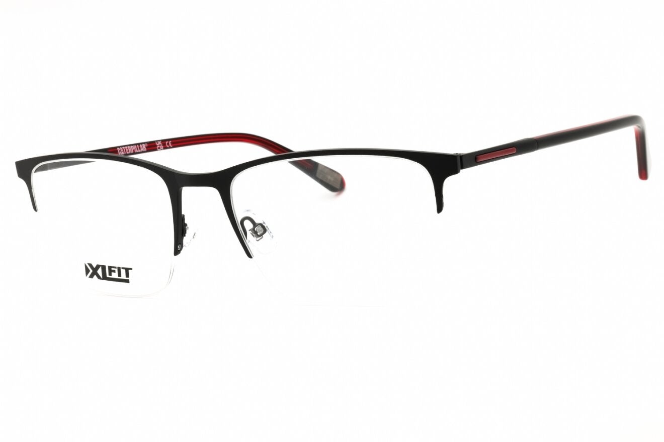 Montura de gafas marca Caterpillar con forma Rectangular estilo de marco Media Montura, de colores Negro, Vinotinto
