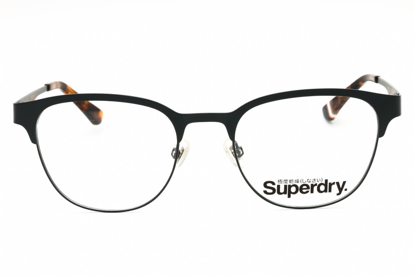 Montura de gafas marca SUPERDRY con forma Clubmaster estilo de marco Media Montura, de colores Negro, Animal Print