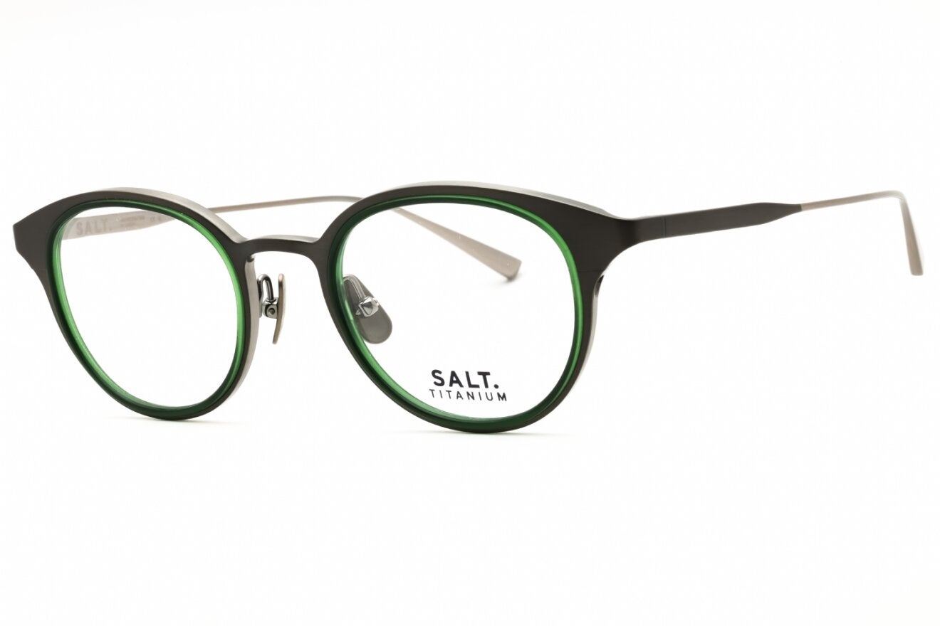 Montura de gafas marca Salt con forma Redonda estilo de marco Completo, de colores Gris, Verde Oscuro