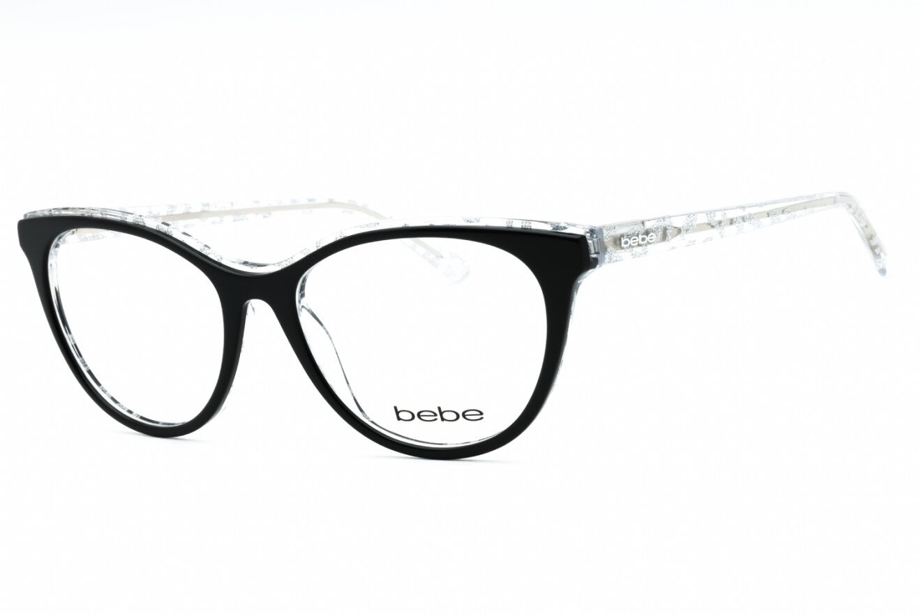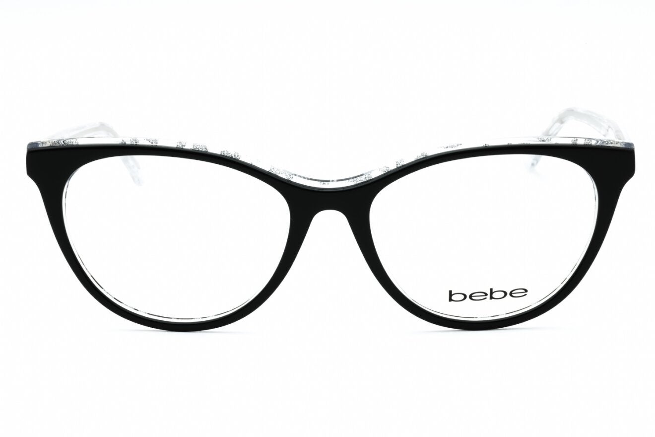 Montura de gafas marca BEBE con forma Agatada estilo de marco Completo, de colores Negro, Transparente