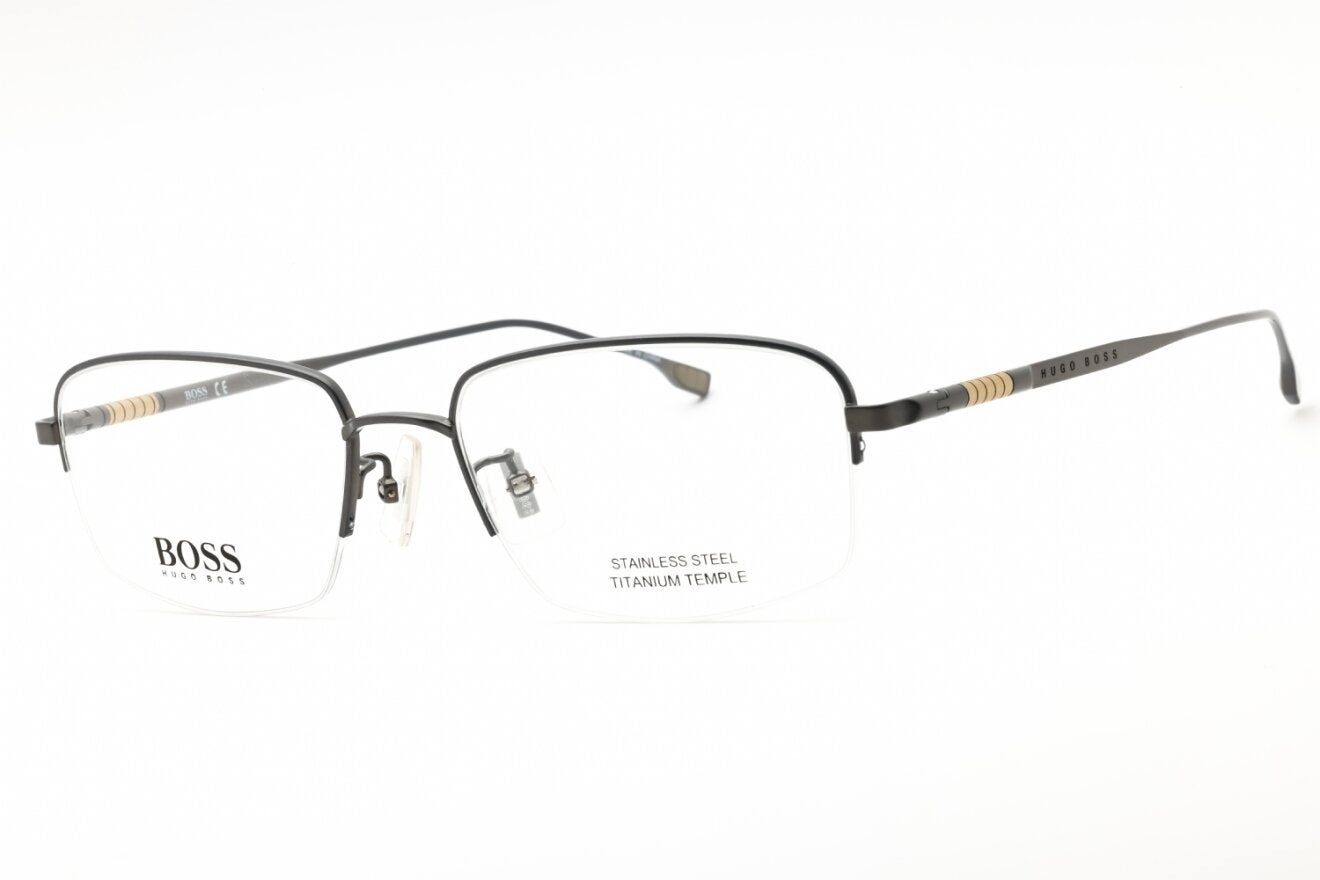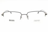 Montura de gafas marca HUGO BOSS con forma Rectangular estilo de marco Al aire, de colores Gris, Dorado