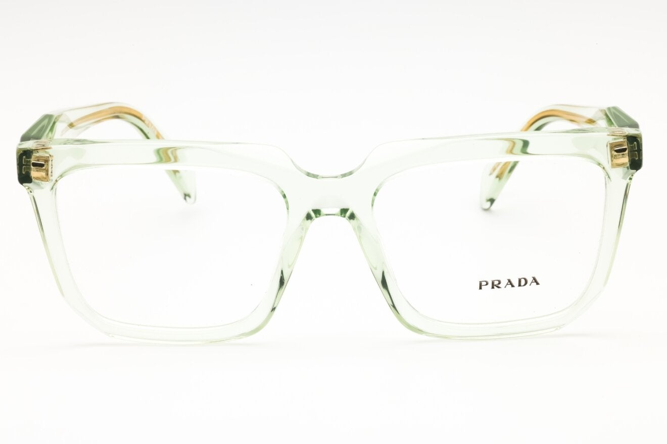 Montura de gafas marca PRADA con forma Cuadradas estilo de marco Completo, de colores Amarillo Herbal, Transparente