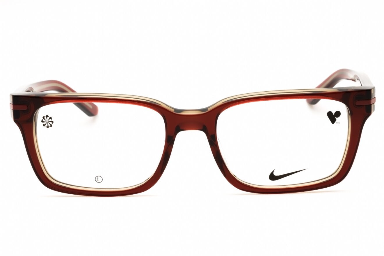 Montura de gafas marca NIKE con forma Wayfarer estilo de marco Completo, de colores Vinotinto, Cafe