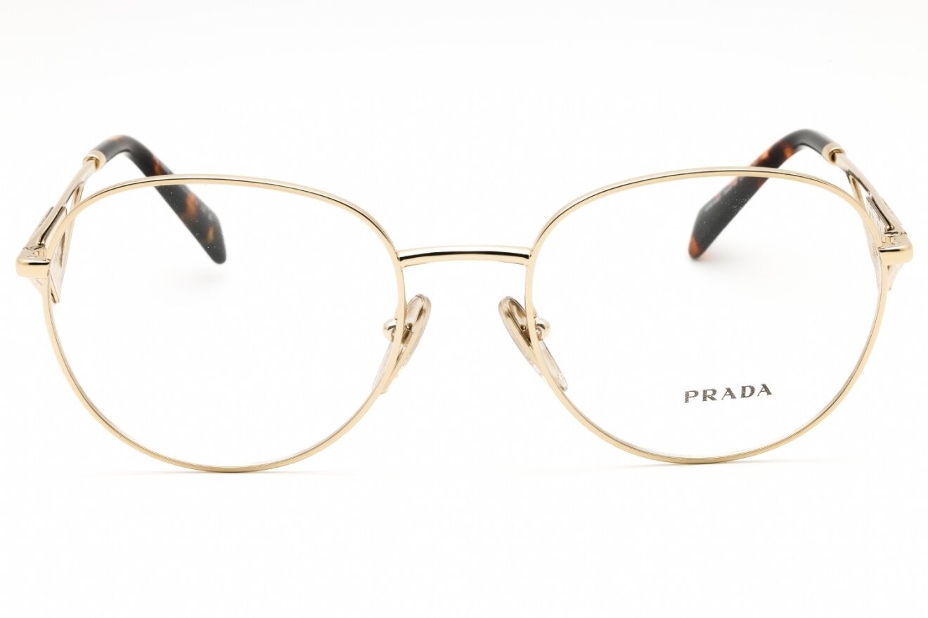 Montura de gafas marca PRADA con forma Redonda estilo de marco Al aire, de colores Animal Print, Dorado