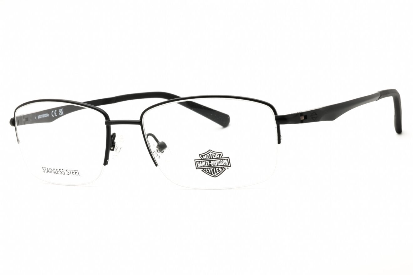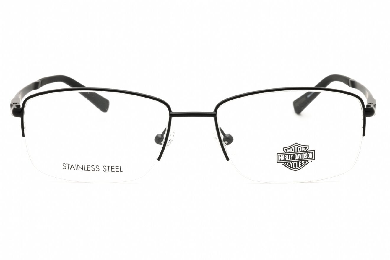 Montura de gafas marca HARLEY DAVIDSON con forma Rectangular estilo de marco Media Montura, de colores Negro, Plata