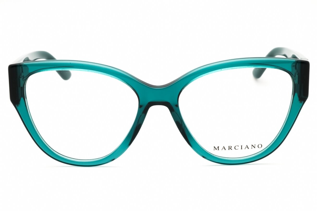 Montura de gafas marca GUESS BY MARCIANO con forma Agatada estilo de marco Completo, de colores Negro, Verde Aguamarina