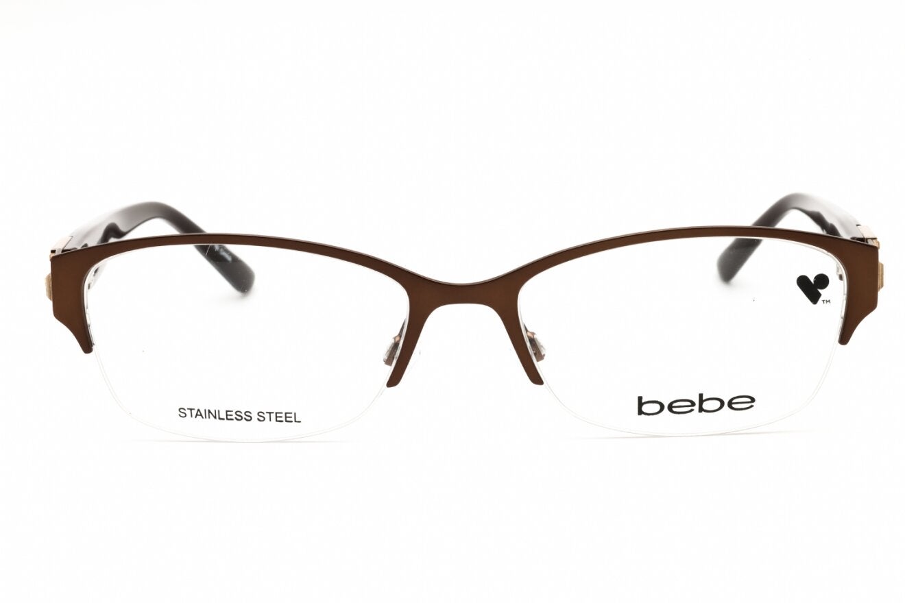 Montura de gafas marca BEBE con forma Rectangular estilo de marco Media Montura, de colores Negro, Cafe