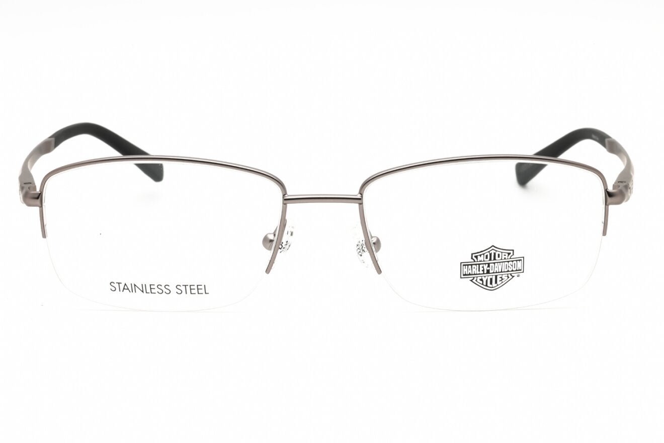 Montura de gafas marca HARLEY DAVIDSON con forma Rectangular estilo de marco Media Montura, de colores Gris, Plata